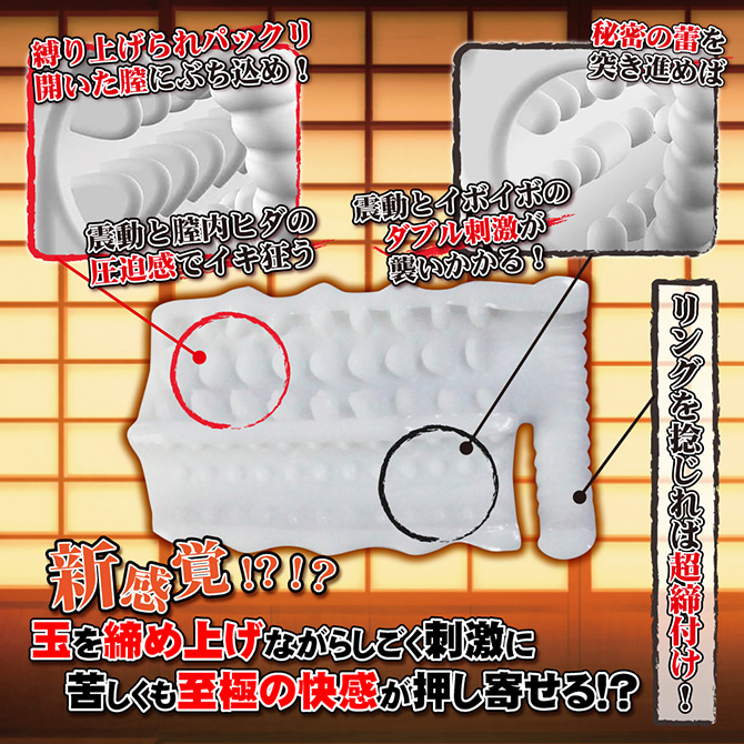 玉を締めながら扱く快感!強力震動ローター付属の二穴オナホールです。10段階強力震動ローターとイボイボのヒダの同時刺激に昇天必至!更に、ホールに付帯するリングを捻ってペニスに巻き付ければ、更なる圧迫感を味わえます。薄桃色の溢れる蜜壺、身悶え震える蕾を突き上げろ!【貫通/USBマグネット充電式】パッケージサイズ:12.5×9×5cm本体サイズ:12.5×8.8cm重量:ホール・154g ローター・57g