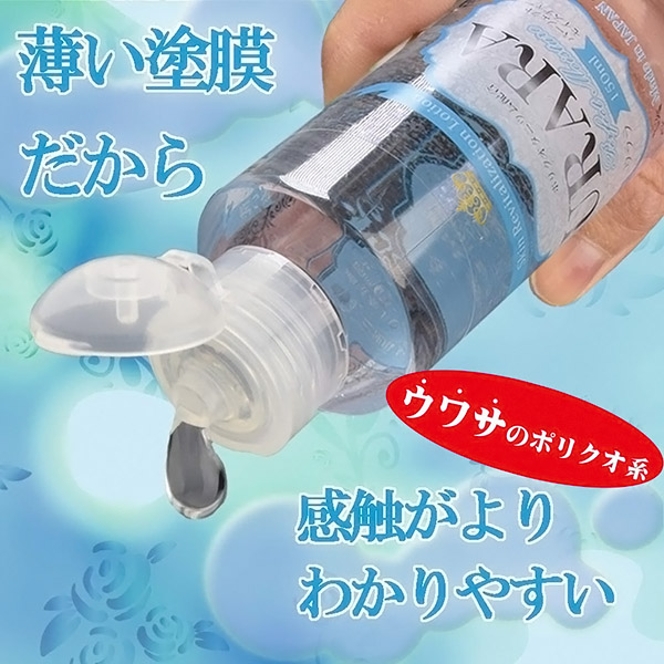 一般的なポリアクリル系ローションより、【うるおい】が長続きすると言われているポリクオタニウム配合のローション。使用後のお肌の乾燥が気になる人にオススメ!一般的なローションより、薄い粘膜で潤滑させるからトロみで感触が失われる事も無く、より生に近い感覚が味わえます。少ない量で大丈夫なので意外と経済的かも?内容量:70ml