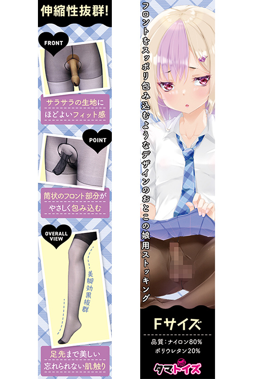 フロントをスッポリ包み込むようなデザインのおとこの娘用ストッキング♪サラサラの生地にほどよいフィット感で伸縮性抜群!足先まで美しく忘れられない肌触りで包み込むようなフィット感がたまりません★ フロント部分は筒状となっております。Fサイズ 品質:ナイロン80% ポリウレタン20%パッケージサイズ:H20.5×W12.5×D3.5cm重量:30g