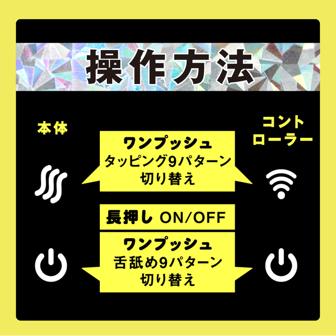 Gスポ覚醒!高速タッピング!超!愛を感じる舐め×手マンバイブ! トントンとGスポを刺激する高速タッピング機能は まるで手マンされているかのような極上快感! スベスベの舌で舐め上げるクンニはリアルでは味わえない超高速舌技! クンニ×Gスポ責めでたまらない快感 遠隔操作コントローラー付きなので、手放しでも楽しめます! 中イキ開発にもオススメです! 敏感な部分に直接触れるものだから、ぷにっとソフトな素材を使用しました。 タッピング9パターン&舌舐め9パターン。