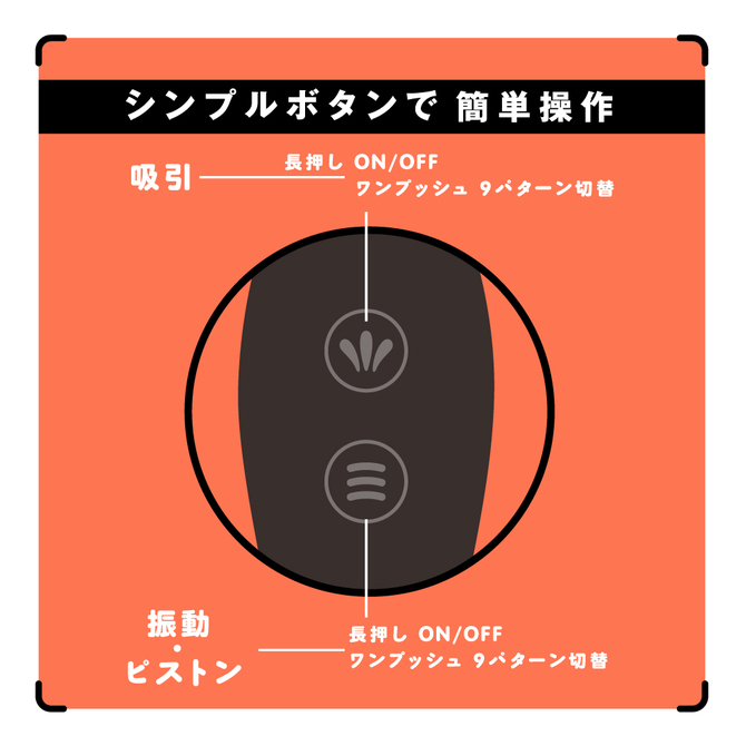 長押しON/OFF 上部:吸引9パターン 下部:振動・ピストン9パターン
