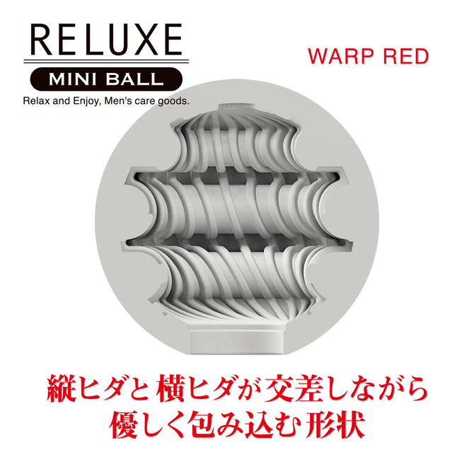 あの人気商品RELUXE(リラクゼ)がミニサイズのボール型になって登場! 小型ながら、しっかりとした感触をお楽しみいただけます。 このWARPREDは縦ヒダと横ヒダが交差しながら優しく包み込む形状です。 ソフトでゆったりとした感触は、まったりとロングプレイを楽しむのに最適です。 前作に引き続き、クリアなボディは見た目にも美しく、自らのものが透けて見える淫靡な効果が期待できます。また使用後に水洗いする事で、繰り返しお使いいただけます。 リラクゼ・ミニボールをお楽しみください。