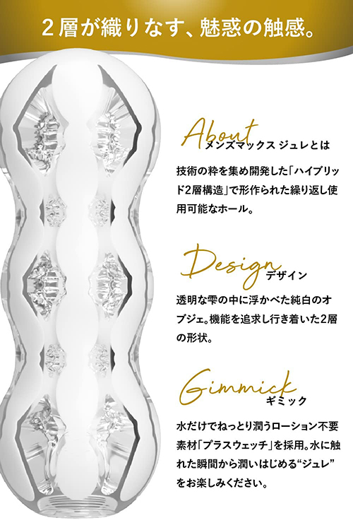 「ハイブリッド2層構造」で作られた繰り返し使えるホールです。 フラワータイプは花びらの突起が天にも昇る刺激を味わえます。 内部素材には水だけでねっとり潤うローション不要素材「プラスウェッチ」を採用。 水に触れた瞬間から潤いはじめます。 精巧な内部が見えるクリスタルボディの内側は、花の「めしべ」を モチーフとした集合突起物のクリスタルゲル層と、様々な種をモチーフとした プラスウェッチ層が絡み合うハイブリッド刺激。 使用後は水・またはぬるま湯で洗い流して繰り返し使えます。 またケースがそのまま乾燥スタンドになるので保管も便利。 さらにホール表面のベタつきやホコリの付着などを抑えるポケットパウダーも付属しています。