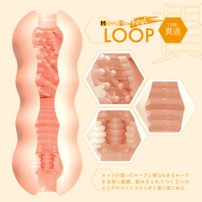 ループ【貫通タイプ】はエッジの効いたループと弾力のあるループを全体に配置。絡みまとわりつく2つのエリアのコントラストが1度に楽しめる内部構造。心地良い感触をぜひお試しください。パッケージサイズ:H16.5×W7.0×D6.0cm本体サイズ:H13.8×W5.2×D5.2cm原産国:日本付属品:予備ローション付き