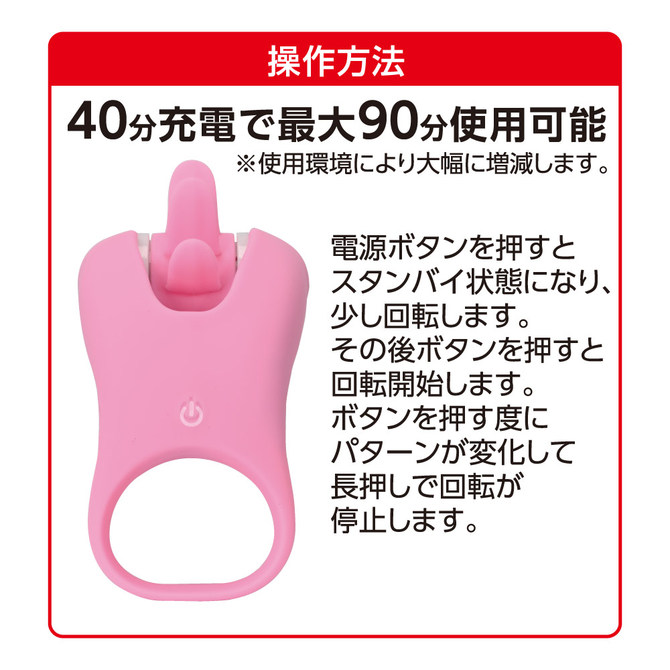 左右逆回転を繰り返す特殊ローリングアクション機能のリング登場!よりリアルな低速回転アクションをハイパワーモーターで実現。指にはめたり、リングとして着用してクリや乳首を刺激!リバース回転を繰り返す動きを含む10パターンアクション。リチウムイオン電池搭載で90分で満充電・最大40分使用可能。(※使用環境により大幅に増減します)生活防水性能。リング部は肌触りの良いシリコン素材採用。パッケージサイズ:縦10.0×横14.6×奥行5.0cm本体サイズ:9.4x4.5x4.7cm重量:40g付属品:充電ケーブル