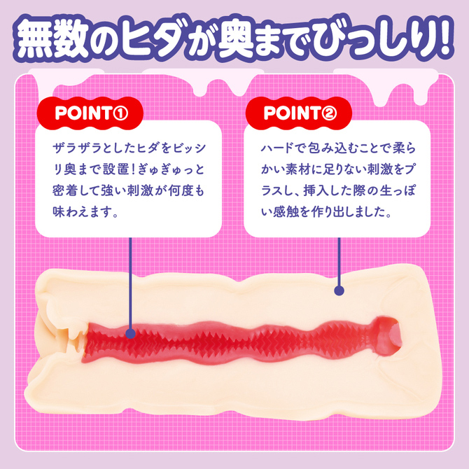 手からこぼれ落ちるほどのウルトラソフト素材をハードで包んじゃいました!挿入した際の生っぽい感触を再現しながらハードで包み込むことで足りない刺激をプラス。ザラザラとしたヒダをビッシリ奥まで設置!ぎゅぎゅっと密着して強い刺激が何度も味わえます。極端に硬さの違う素材によってまるで生きているかのような、うごめく感触をお楽しみください。パッケージサイズ:縦20.0×横17.5×奥行8.0cm本体サイズ:縦17.5×横7.0×奥行7.0cm重量:560g付属品:GPROJECTxPEPE 5ml ローション