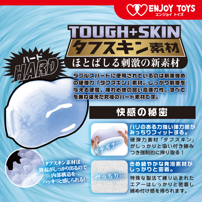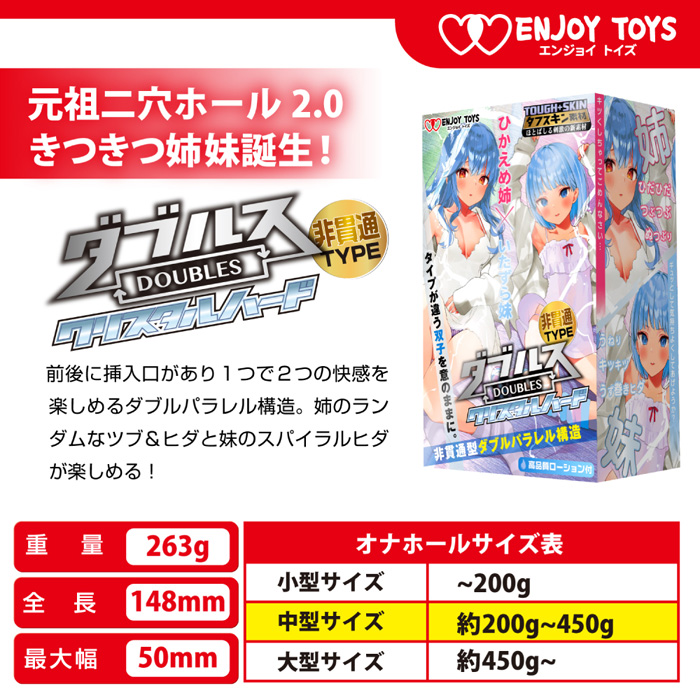 ダブルハードに使用されているのは刺激強めの硬弾力「タフスキン」素材。しっかr5い刺激を与える硬度、挿れ心地の良い高弾力性。すべてを兼ね備えた究極のハード素材です☆ダブルスハード姉妹は一つで「スパイラルと粒イボを配置した妹ゾーン」と「多数のイボとランダムなヒダの姉ゾーン」両方が楽しめます♪非貫通タイプなのでガンガン攻める奥突き感を堪能できます。パッケージサイズ:H18.0xW11.0xD7.0cm本体サイズ:全長:14.8cm 最大幅:5.0cm重量:263g