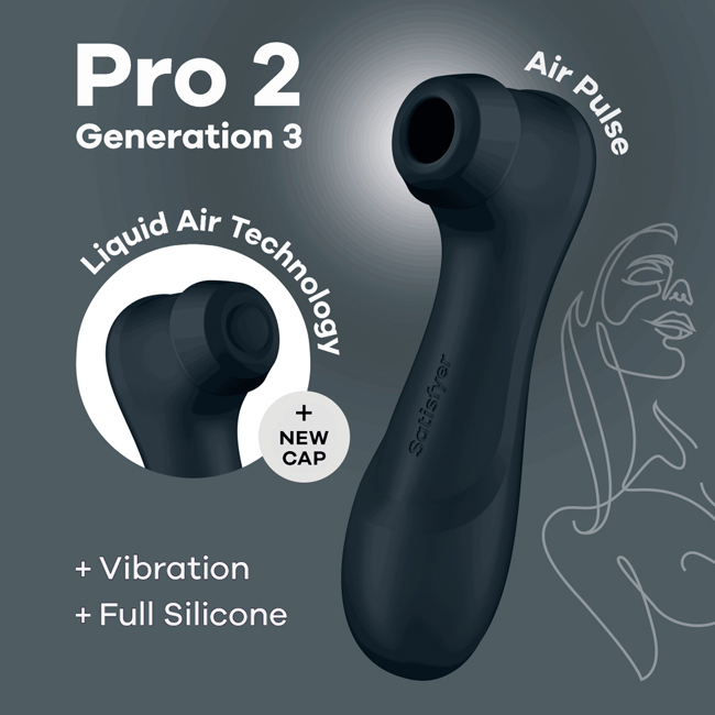 Satisfyerの世界的ベストセラーPRO 2がパワーアップした次世代モデルが新登場!通常の吸引キャップとリキッドエアーキャップを2個付属し、気分に合わせて2つのキャップを選択できます。