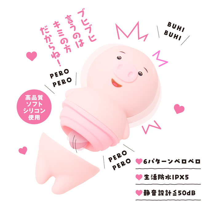 かわいい豚の人形かと思ったら・・・舐めローター!見た目からは創造できない、超高速!舌舐めローターです★ダサかわいいブタくんが一生懸命舐めてくれます!多彩なペロペロ6パターンで絶対絶頂♪高品質ソフトシリコン使用のふんわりとろける柔らか舌!誰でもかんたん操作のワンプッシュ式!(鼻を押してね♪)使用後も清潔に保てる生活防水 IPX5。周りを気にせず遊べる静音設計 ≦50dB。パッケージサイズ:10×7×6.6cm本体サイズ:8×4.5×4.2cm重量:50g付属品:ジャック式USB充電ケーブル