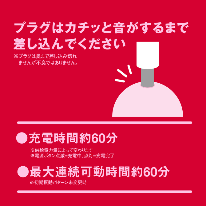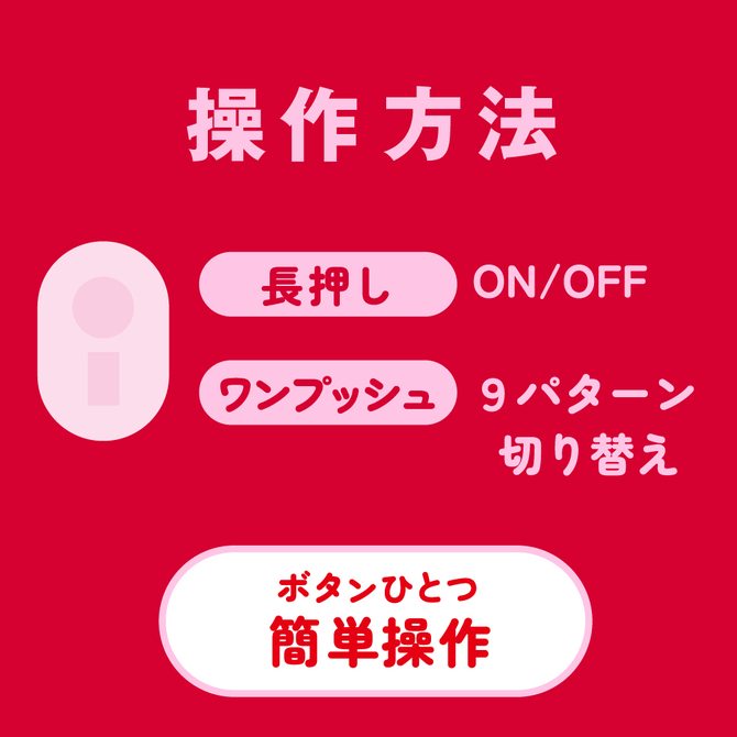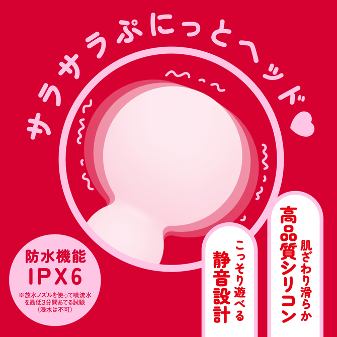 肌ざわり滑らかで高品質のサラサラぷにっとヘッドが360度可動し、ぴったりフィットで感度UP! ボタンひとつの簡単操作で多彩な9パターン振動が楽しめる! こっそり遊べる静音設計。 防水機能:IPX6でお手入れ簡単。(浸水は不可) ※充電時間約60分(供給電力量によって変わります) 最大連続稼働時間約60分(初期振動パターン未変更時)