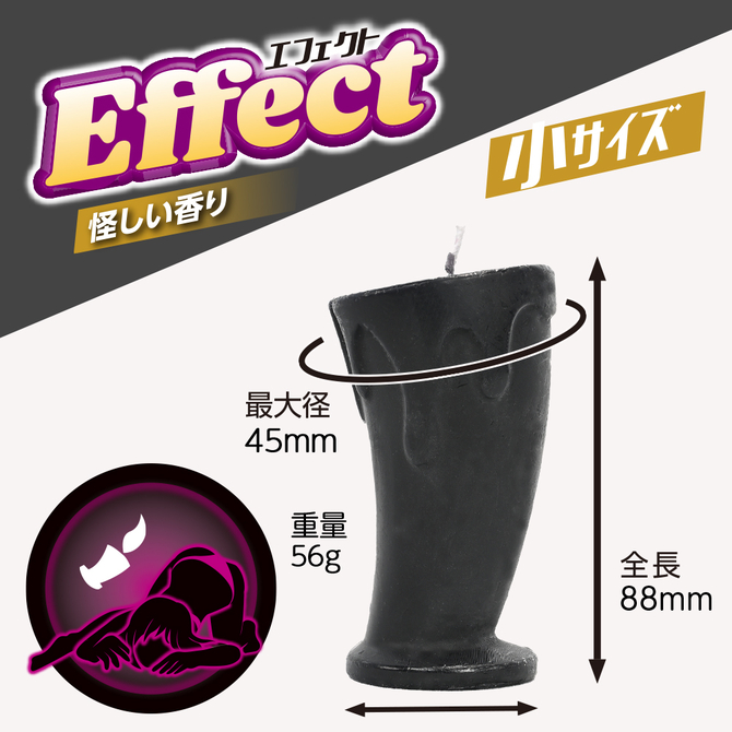 エモーショナルなデザインとプレイを盛り上げる妖艶な香り付きのSM低温ローソク登場持ちやすさも考えた太さのオリジナルデザインキャンドルです。上級者にオススメの怪しい香り本体サイズ:全長8.8×最大径4.5cmパッケージサイズ:11.0×7.0×4.5cm重量:56g