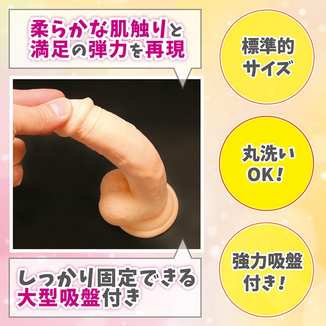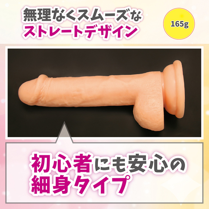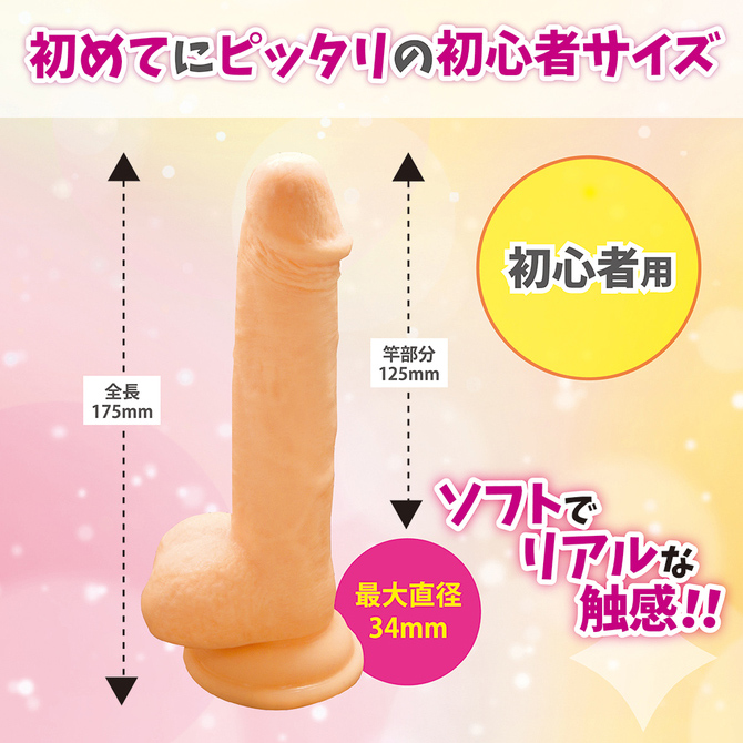 初めてにピッタリの細身の初心者サイズしっかり固定できる大型吸盤付きでソフトでリアルな触感 ! ! 無理なくスムーズなストレートデザイン☆柔らかな肌触りと満足の弾力を再現◎丸洗いOK ! パッケージサイズ:H22.0×W10.5×D7.2cm 商品サイズ:全長17.5cm 竿部分12.5cm 最大直径3.4cm 重量:165g