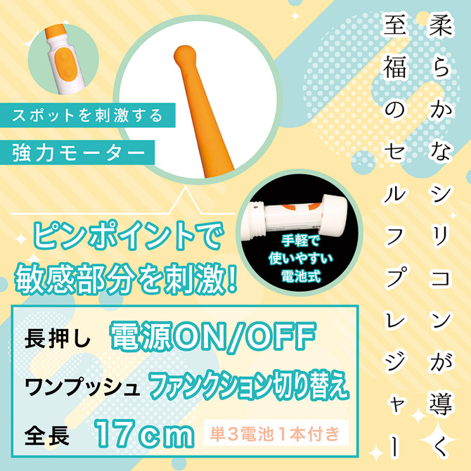 ビビットな快感 !柔らかなシリコンが導く至福のセルフプレジャー☆心地良い刺激が深い快感を紡ぎだし柔らかなシリコンがあなたの快楽を包み込む◎ マイクロローターのパワフル振動で敏感部分をピンポイント刺激 ! 7パターンのリズムアクション☆手軽で使いやすい電池式パッケージサイズ:H19.3×W9.0×D2.5cm 商品サイズ:全長17cm(シリコン部分7.5cm) 最大径1.7cm 重量:60g単3電池1本付属