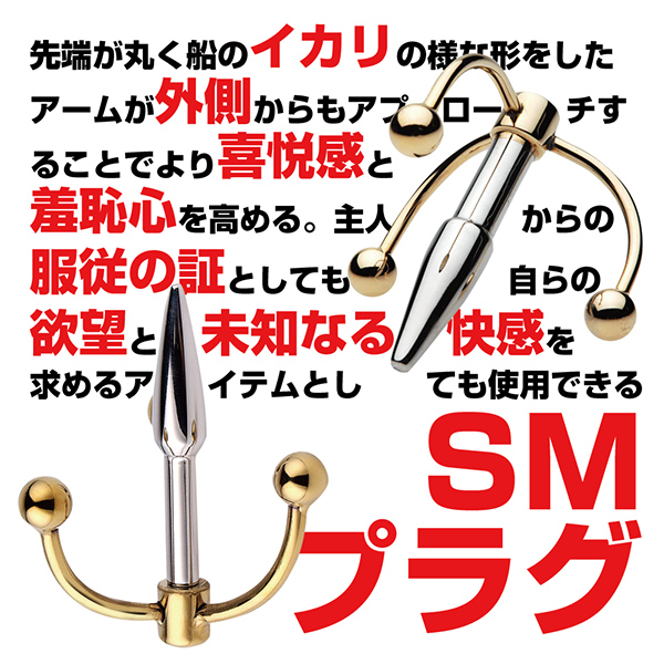 先端が丸く船のイカリの様な形をしたアームが外側からもアプローチすることで、より喜悦感と羞恥心を高める!主人からの服従の証としても、自らの欲望と未知なる快感を求めるアイテムとしても使用できるSMプラグです★本体サイズ:全長:5.5cm×最大径 8mmパッケージサイズ:15.5×9.4cm