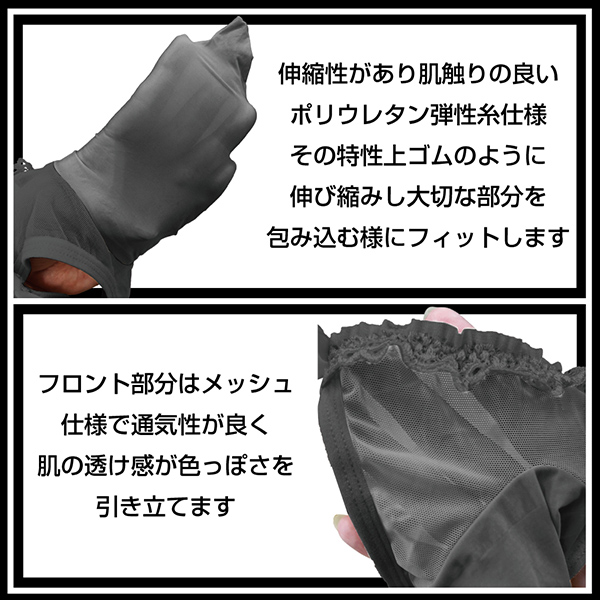 伸縮性のある触り心地抜群な素材の玉袋もカバーするポール付。優しく大切な部分を包み込みます。