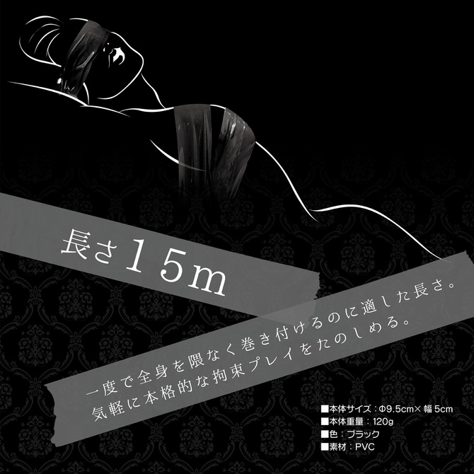 SMプレイの必須アイテム【ボンデージテープ】!気分で色を変えたいお客様の声にお応えし、女体を彩る業界最多の7色をラインナップ!ノリを使わない万能テープで服や髪・肌を傷めず、お手軽カンタン拘束プレイ!●濡れてもくっつく、不思議な万能テープ科学の力でテープ同士が吸着。ベタつかないので片付けも簡単。髪や肌、繊細なグッズやテーブルにも安心して使えます。●テープ長:15m●本体サイズ:φ9.5cm×W5.0cm●総重量:120g●素材:PVCパッケージサイズ:9.5×9.5×5.0cm