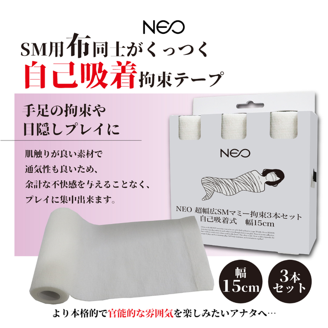 NEO 超幅広SMマミー拘束3本セット 自己吸着式 幅15cm 白 2,300円(税込2,530円)