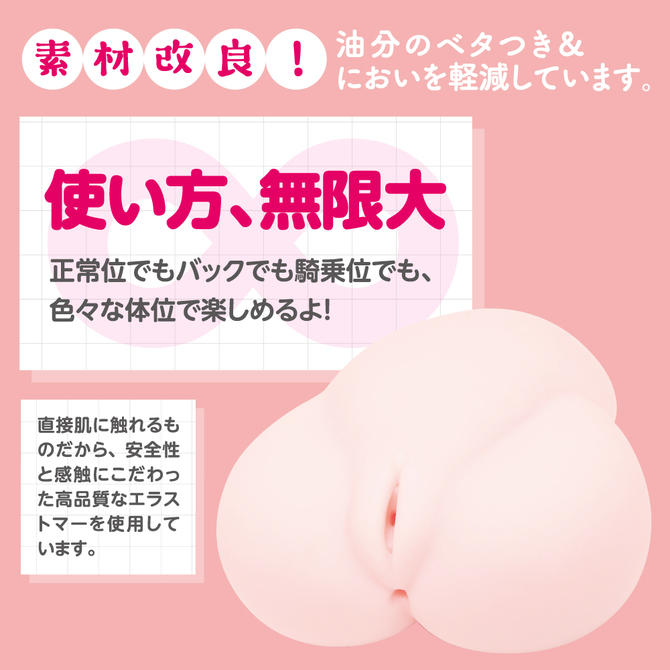 ふんわりとろける生オナホ『ぷにあなDX ふわとろ』の素材が良くなりました。 油分のベタつき&においを軽減しています。 圧倒的リアル使用感で満足度MAX! ずっしり重量 約2.2kg! 手持ちでも据え置きでも、ちょうどいいサイズ感で、使いやすさ抜群の黄金比ボディ! 究極の曲線美は、最高水準の造形技術! ふっくらお腹がとってもCUTE! 耐久性抜群の桃尻を揉み放題! ド迫力の超肉厚ヒップは、異なる2つの刺激が味わえる2穴仕様! 使い方無限大! 正常位でもバックでも騎乗位でも、色々な体位で楽しめます。 直接肌に触れるものだから、安全性と感触にこだわった高品質なエラストマーを使用しています。 長年愛され続けているこだわりの内部構造は健在! あなたのサイズに合わせて変化する形状記憶素材! ふわとろ素材は伸縮性が高く、様々なサイズに対応します。 使うたびにあなたの形状に変化し、毎回違った締め付け刺激を体感できます。 2穴大型オナホの完成形がここに誕生! パッケージイラスト:maruku 検査番号:2301801