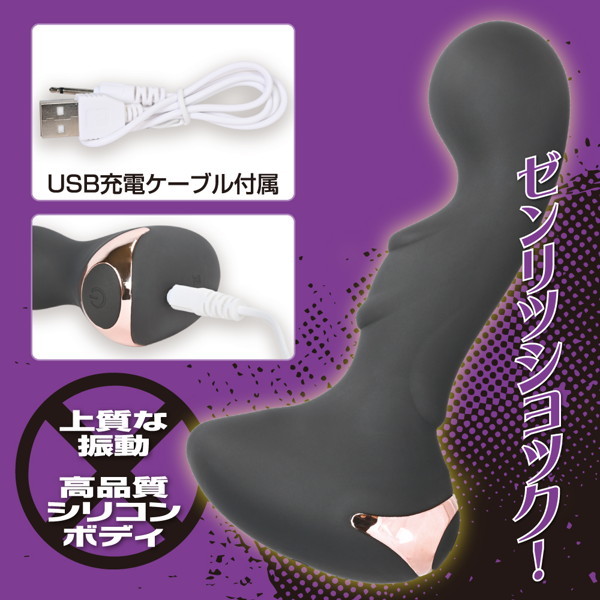 前立腺をブルブルせめたてる☆滑らかで心地よい肌触りのシリコンボディと上質なブルブル振動が織りなす気持ちの良い刺激が特徴のアナグッズです。ゼンリツ刺激に特化した特殊形状に高品質モーター振動が10パターン楽しめます。充電時間120分で最大90分使用可能(使用環境により大幅に増減します)IPX4の防水性能だからサッと水で洗えるので衛生的です。パッケージサイズ:14.3×7.5×4cm商品サイズ:12.2×6×3.6cm重量:74g付属品:充電ケーブル