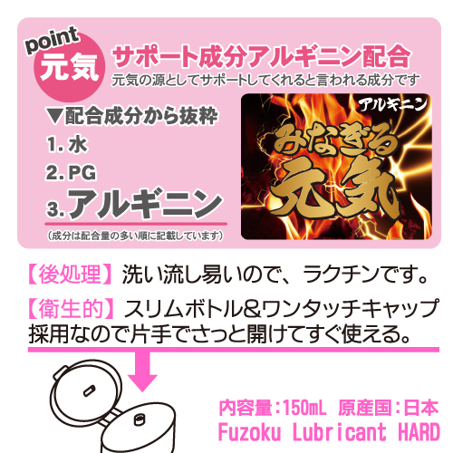 プレミア風俗嬢に「また使いたい」と言わしめたローション!長くじっくりゆっくり楽しみたい方、男の潮吹き体験を狙いたい方に特にオススメの高粘度ローションです。感じ難い方にも、サポート成分としてアルギニン配合!試作品でプロに再インタビューも実施し研究に研究を重ねたローションです!片手でも開けやすいボトル、水で流しやすくて、ストレスもフリー。商品サイズ:15.5×5.5×3.5.cm内容量:150ml