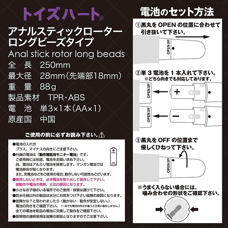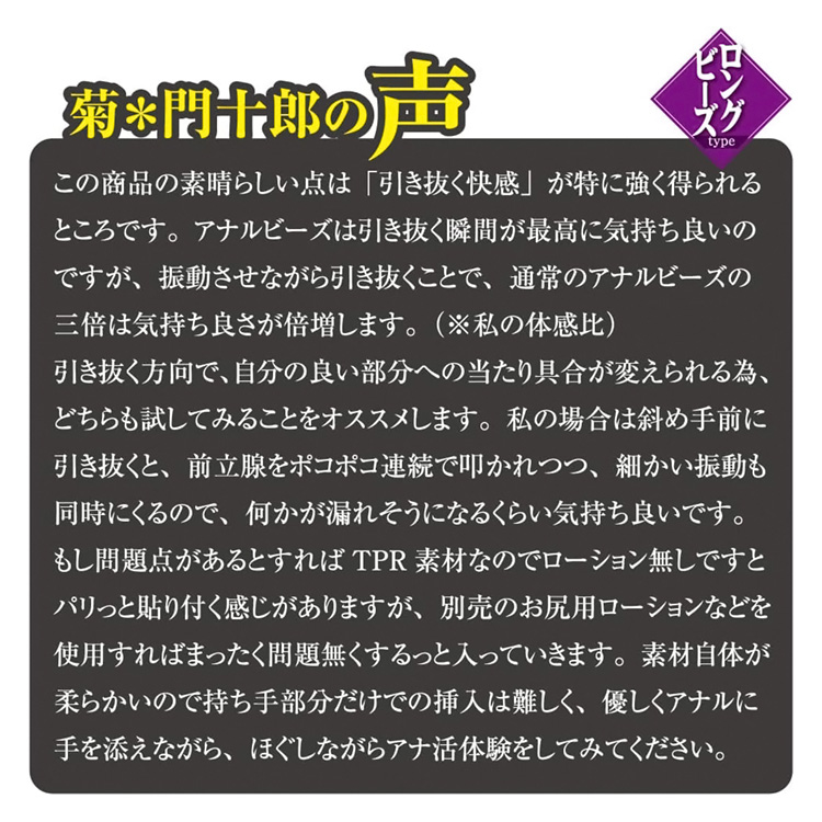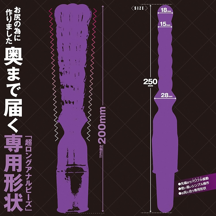 アナルに合う「超ロングアナルビーズ」な専用形状 お尻に会心の一撃を喰らわす!電動ロングアナルビーズ形状で細めでもキくゥ〜!あなたもメス堕ちしてみませんか? パッケージサイズ:8×25.5×5cm商品サイズ:25×最大径2.8cm重量:88g付属品:単3アルカリ乾電池1本(モニター用)