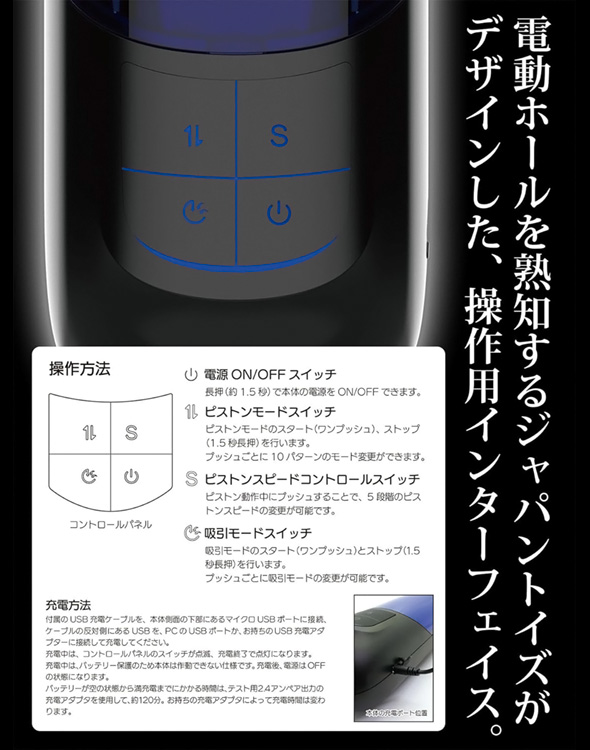 バキューム(吸引)しながらピストンでシゴく電動オナホール。 フェラの達人の超絶技巧を完全シミュレート。 優しく吸引されながら、ピストンでシゴかれてください。