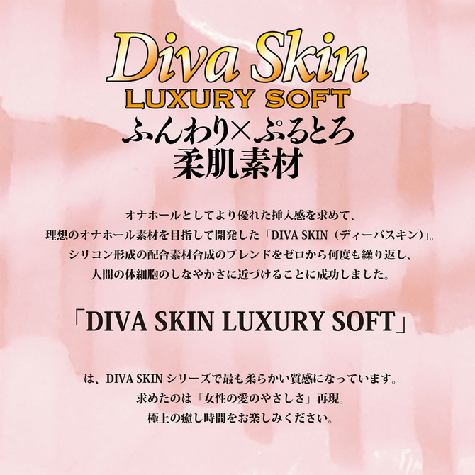 「ふわとろ」から、「ふんわり×ぷるとろ」へ。 るいちゃんの挿入感のさらなる再現のために必要だったのは、「DIVA SKIN」の最高級素材「LUXURY SOFT」の採用でした。 より女性の体内の柔らかさの再現を求めて開発されたのが「DIVA SKIN LUXURY SOFT」です。
