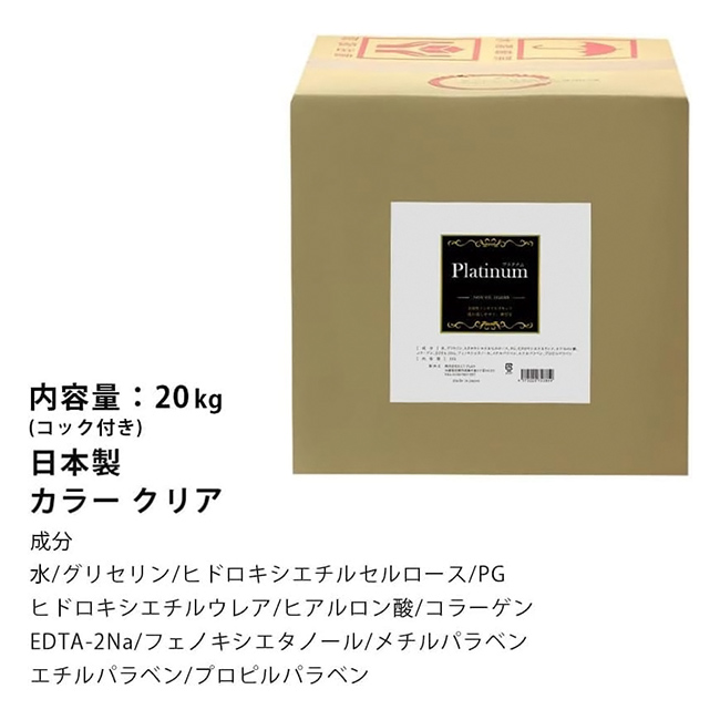 エステやメンズエステ店で活躍する水溶性マッサージオイルです。伸びが良く、滑らかなテクスチャーに仕上げました。水またはぬるま湯で簡単に洗い流すことができ、後処理も楽に行えます。大容量の20kg コック付きです。内容量:20kg日本製・成分水、グリセリン、ヒドロキシエチルセルロース、PG、ヒドロキシエチルウレア、ヒアルロン酸、コラーゲン、EDTA-2Na、フェノキシエタノール、メチルパラベン、エチルパラベン、プロピルパラベン