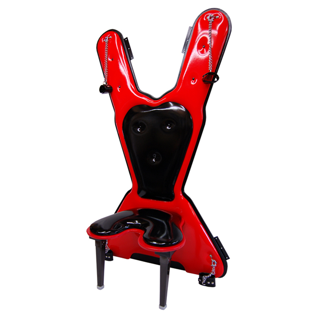折りたたみチェアー「アムールエックス」。壁に固定するタイプの器具で、イスの足は折りたたみ式のため、狭いスペースを有効に利用できます。イスの折りたたみにより、立った状態でも座った状態でも拘束できます。付属品:手枷・足枷本体サイズ:縦145cm×横90cm×奥行き45cm※受注発注商品となりますので、発送まで3〜4週間程かかります。※この商品を含むご注文につきましては、誠に勝手ながら「銀行振込」でのお支払いのみ受付とさせていただきます。※こちらの商品は大型商品のため別途送料をいただく場合がございます。