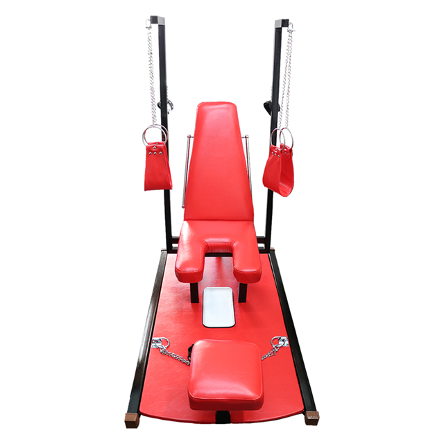 開脚した状態で拘束できる器具です。 イスに座り足乗せベルトに足を通すとかなり恥ずかしい体勢になります。 手も拘束できるため、手で股を隠すことも難しくなります。イス下には特殊な樹脂カガミ付きで気分が盛り上がること間違いなし♪