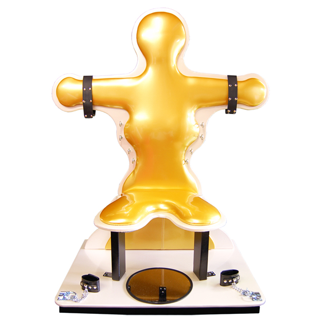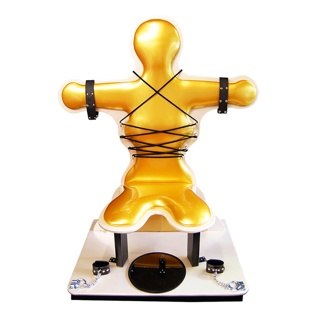 SMの醍醐味「縛り」と、器具での拘束をお楽しみいただける新型SM什器です。 ボディ部分の左右にリングがあり、そこに別売りのSMロープを通した状態で拘束すれば、ロープの胸への食い込みを美しく楽しむことができます。 また、イスの下には割れにくい特殊な樹脂カガミが付いていますので、縛られた状態で恥ずかしい部分を覗きこまれ恥ずかしさ倍増です。