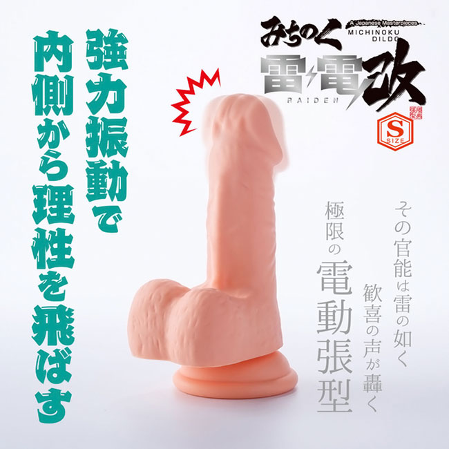 みちのく雷電改 Sはシンプルさが自慢の先端振動モデル。 ブルブルと心地よく震える、やや小さめサイズのディルドです。 7パターンの先端振動はじわりじわりと響いてきます。 じっくりほぐす様な、震える官能をお楽しみください。