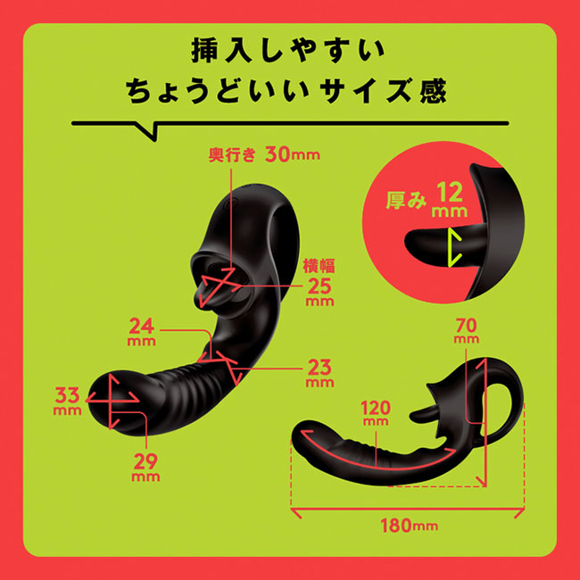 パッケージサイズ:20.5cm×横12cm×奥行5cm 本体サイズ:18cm×7cm×4cm 重量:170g 付属品:ペペ5ml ローション・USB充電ケーブル