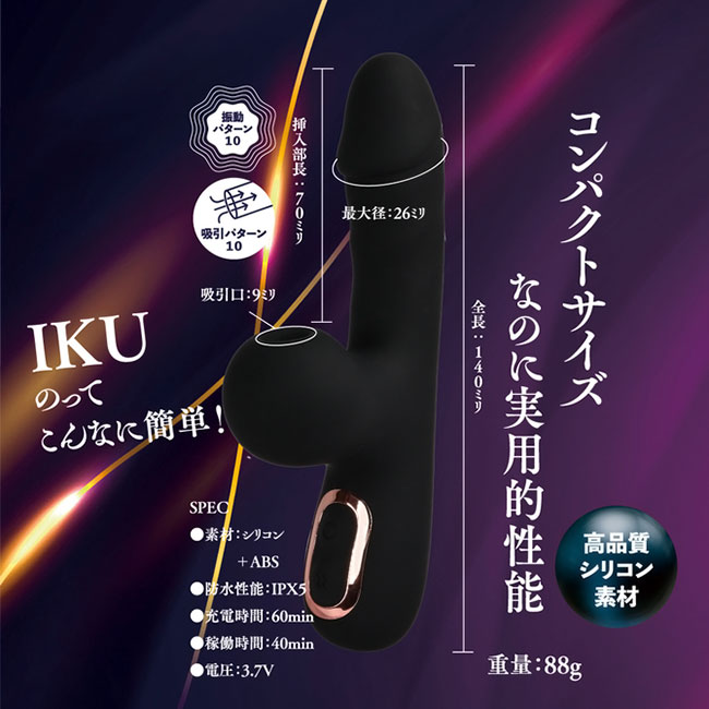 スタイリッシュなのにカリ部分がしっかり目造形★ G責めと吸引外責めを楽しめる軽量・コンパクトなスティックアイテムです。 Gには絶妙な振動を生み出す上質のモーター。 何とも言えない快感の真空振動吸引機構を外責めに配置。 滑らかで肌心地の良いシリコン素材にしっかり洗えるIPX5の防水性能。 実用性の高い10パターン振動で自分に合わせて楽しめます。 60分充電で最大40分の使用が可能(使用環境により大幅に増減します。) パッケージサイズ:15.5cm×横7.8cm×奥行3.3cm 本体サイズ:14cm×横5.8cm×奥行2.9cm 重量:88g 付属品:充電用USBケーブル