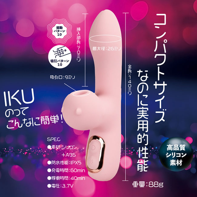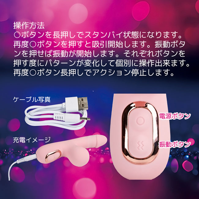 コンパクトでスタイリッシュなピンクのニクイヤツ★ G責めと吸引外責めを楽しめる軽量・コンパクトなスティックアイテムです。 Gには絶妙な振動を生み出す上質のモーター。 何とも言えない快感の真空振動吸引機構を外責めに配置。 滑らかで肌心地の良いシリコン素材にしっかり洗えるIPX5の防水性能。 実用性の高い10パターン振動で自分に合わせて楽しめます。 60分充電で最大40分の使用が可能(使用環境により大幅に増減します。)
