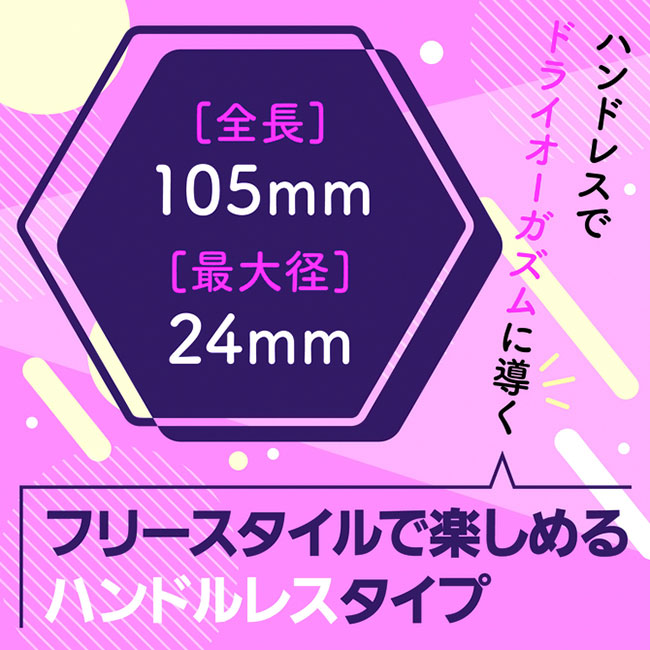 ハンドレスでドライオーガズムに導く!滑らかな高級シリコン素材が生み出すソフトな質感と個性的なフォルムが挿入感やフィット感を演出。着衣でも使用できて、的確にPスポットを刺激します!フリースタイルで楽しめるハンドレスタイプ。アナルプレイに新たな刺激と興奮を追加したいならこのアイテムを選べば間違いなし!商品サイズ::全長:10.5cm×最大径2.4cmパッケージサイズ:16.5×11×5cm重量:25g
