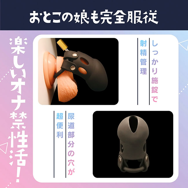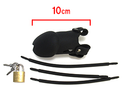 柔らかなシリコンで長時間装着もOK!楽しいオナ禁性活♪しっかり施錠で射精管理でき、サイズ別3種の貞操リングでしっかりホールドします。自縛で妄想膨らむフェチプレイ★おとこの娘も完全服従!適度な締めつけ感が気分を高めます。尿道部分の穴が超便利!!本体サイズ:全長10×4.5cm リング円周:15cm/17cm/19cmパッケージサイズ:13×8×6cm重量:70g
