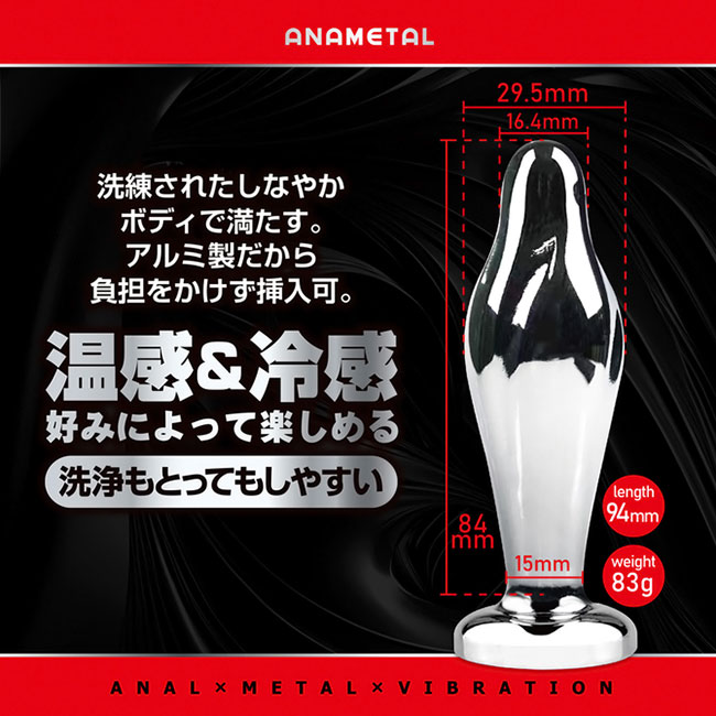 遠隔リモートプレイが可能なアナル用メタルプラグ。 高品質のアルミニウム製で、表面はつるつる滑らか★挿入感もとっても心地良く、扱いやすさも抜群です。