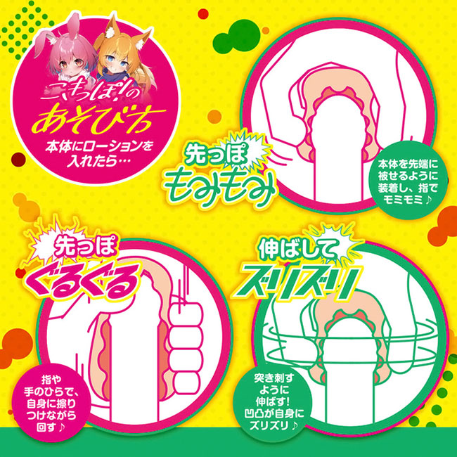 先っぽコキコキ!先端だけで楽しむミニホール。使い方は簡単。本体にローションを塗り、あなたの先端に被せ、あとはぐるぐるもみもみ自由にシゴくだけ。こきっぽ!本体を突き刺すようにひっぱれば、通常のハンドホールと同じように使用することも出来ちゃう。シンプルヒダが、あなたの先端に当たる!弾むように配置されたヒダが、バンピングアタックしてきます★短い時間でサクッとひとコキ。こきっぽ!で、充実した性活はいかがでしょうか。本体サイズ:全長6.5cmパッケージサイズ:10×5×5cm重量:56g付属品:ミニローション非貫通