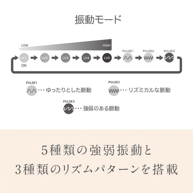 驚きの静音設計と振動力はそのままに、形状やボタン設計を見直して、リズムパターンを1種類追加しました。