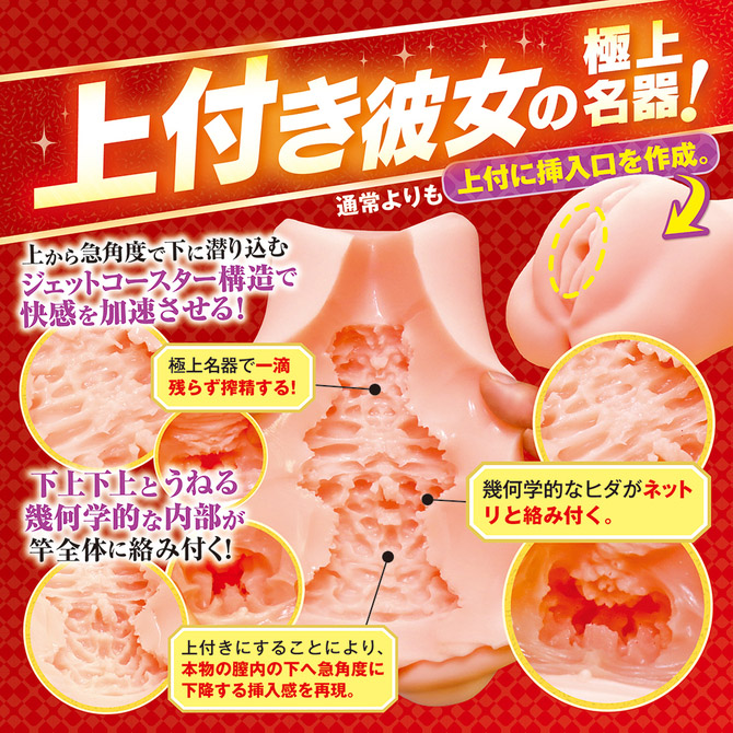 上付き彼女の極上名器!通常よりも上付きに挿入口を作成。上から急角度で下に潜り込むジェットコースター構造で感触を加速させ、上下上下とうねる幾何学的な内部が竿全体に絡み付く!上付きの彼女をガン突きするとのけ反り絶頂する。パッケージサイズ:H21.0×W14.5×D8.5cm商品サイズ:全長17.5×8.5×7.5cm重量:530gMADE IN JAPAN