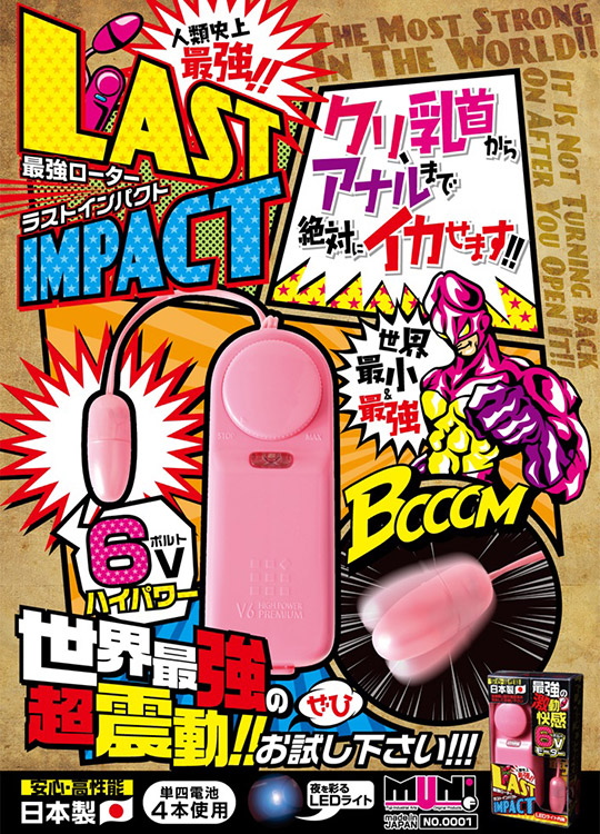 世界最高峰の振動レベルを体感できるローター 規格外の振動レベルで、もはや世界最強との呼び声も高い強力振動ローター「LAST IMPACT ラストインパクト」。その名に恥じない強力振動で、たちまちイカせてくれること間違いなし。操作はダイヤル式の無段階調節となっていて、微調整による強弱をつけることが可能です。ローターのヘッド部は直径1.3cmという小型ローターを採用。ピンポイントで性感帯を刺激できるから、より強力に感じていただけます。また、暗闇での使用でも問題なく使えるよう本体正面にLEDライトを搭載しました。これで、暗闇で使用する際や、陰部をよーく観察したい時などに最適です。世界基準の安全性と高性能を実現した超激震6Vローター、この振動の虜になること間違いなし。