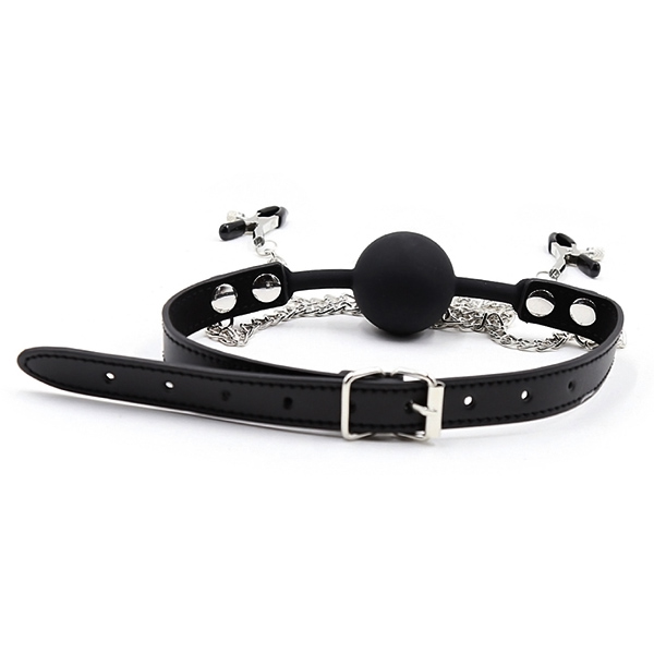 簡単な拘束感が味わえることで人気のボールギャグとニップルクリップが一体となった凌辱アイテム。口枷で拘束されながら感じやすい乳首をつまんだまま放置して恥ずかしい姿を鑑賞してもよし、ほかのアイテムと合わせて使用してもよし、想像力をフル活用してお互いの興奮度をMAXに!柔らかく弾力のあるゴムで覆われている先端は、はさむ強さを調整出来るので痛すぎる心配はありません。