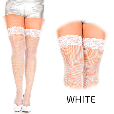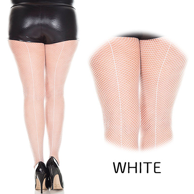 クイーンサイズ 白 バックシーム フィッシュネット パンティーストッキング