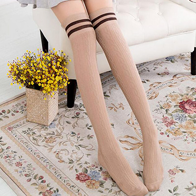 太もも ライン入り カジュアルニーハイソックス ブラウン