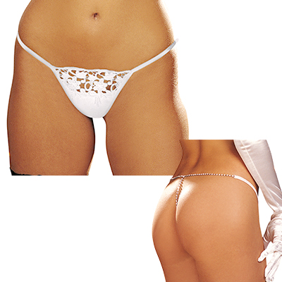 ヴェニスレースラインストーンTバックショーツホワイト 20279P-WH