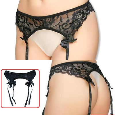 31620 定番人気のフラワーレースガーターベルト ブラック 500円