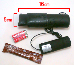 男性器をしっかりと包み込み、振動による快感で昇天させてくれる電動オナホール「ミミズ千匹 〜ブラックエディション〜」。内側にある固定用のPVC製ボディに覆いかぶさるように、ラテックス製の吸着力のある外側素材が男性器を優しく包み込み、挿入したら離れないほどの密着感を与えてくれます。本体の先端には8種類のバイブレーションが楽しめる快感ローターを内蔵。ストロークして快感を得るという本来のオナニースタイルとは異なり、固定したまま振動による快感で刺激を楽しむのに特化した商品です。内部径は3.5cmちょうどに設計されており、それ以上は伸縮性が一切ないため挿入することができませんので、あまりに太いモノをお持ちの方にはお使いいただけないのが難点です。竿全体を覆っているので全体に振動が伝わりそうなものですが、いざ使用してみると亀頭の先端にしか振動が伝わらないので、全体を覆うラテックス製の部分はあくまでも固定用という範囲でお使いください。
