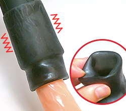 ラバーが亀頭を包み込み振動による射精感を促します。