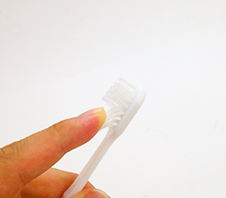 歯磨き液付きなので、水に濡らしてサッとブラッシングができます。ブラシも柔らかくて使いやすい!